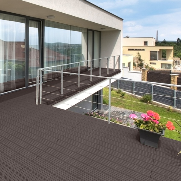 Pflegeleichte und wetterbeständige Terrassendielen der Marke Home Deluxe mit praktischem Klicksystem