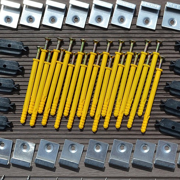 - Je nach Auswahl die gewünschte Fläche und Farbe - komplettes Montagezubehör wie Unterkonstruktion, Anfangs-/Endclips, Abstandsclips, Dübel und Schrauben
