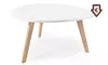 Ein eleganter und kleiner Couchtisch in Weiß mit Beinen aus Eiche im skandinavischen Design