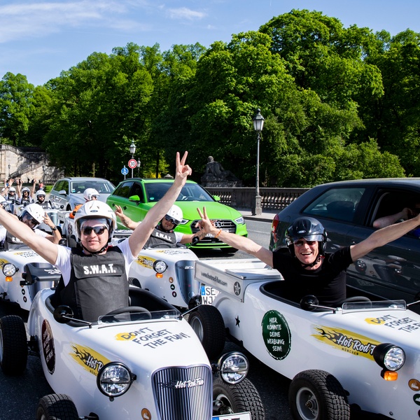 Fahrspaß pur bei 2-stündiger Tour durch München mit den flotten HotRod-Flitzern, einem kundigen Guide und 2 Dosen edlesgrün zur Erfrischung