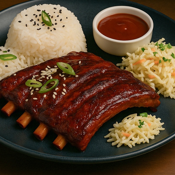 - Zu den Spareribs wird zusätzlich Krautsalat und ein Spicy-Chili Dip gereicht