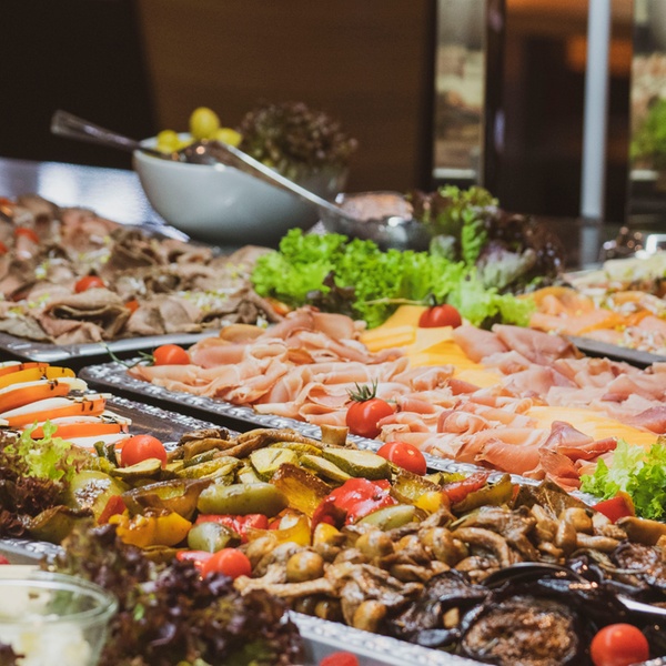 - Warme und kalte Fleisch- und Fischgerichte mit Beilagen