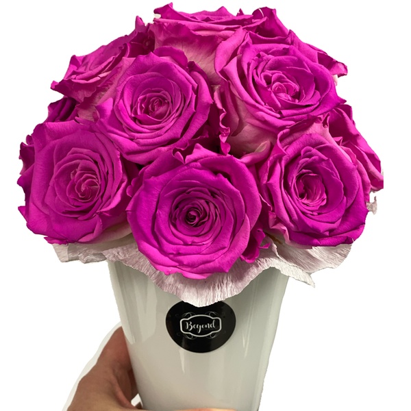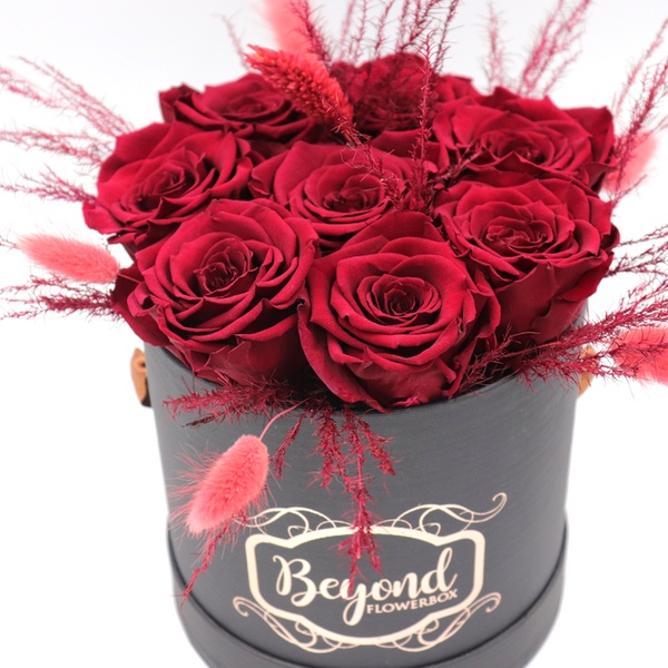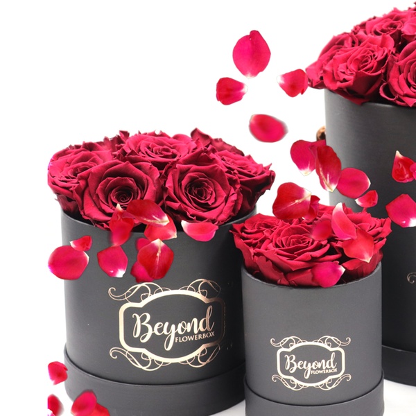 Die hochwertigen Blumenarrangements von Beyond Flowerbox dienen als elegantes Interieur-Design für Lebensräume oder als Dekoration für verschiedene Anlässe, wie Hochzeiten oder Jubiläumsfeiern. Benutzt werden hauptsächlich echte Rosen, die in Ecuador liebevoll gezüchtet und gehütet werden bis sie ihre schönste Blüte erreichen. Zu diesem ganz besonderen Zeitpunkt werden die frischen Rosen in einem schonenden Prozess konserviert, um ihre natürliche Schönheit und bezeichnende Zartheit langanhaltend zu bewahren. Anschließend sorgen die Blumendesign-Spezialisten von Beyond Flowerbox für die Kreation von einzigartigen Blumenarrangements, die die delikaten Infinity-Rosen als Mittelpunkt der Ausführungen darstellen. Die Blumenaufführungen von Beyond Flowerbox müssen weder gegossen noch gepflegt werden, und blühen ganz ohne Hilfe. Bis zu 3 Jahre lang bleiben die Infinity-Rosen blütenfrisch erhalten, damit sie lange bewundert werden können.