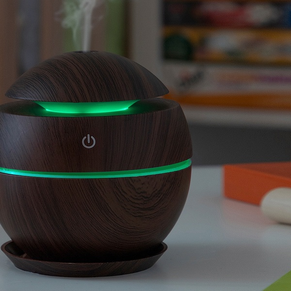 Dieses kompakte Gerät mit Ultraschall-Technologie und mehrfarbiger LED-Sequenz kann die Luftqualität verbessern und den Raum beduften