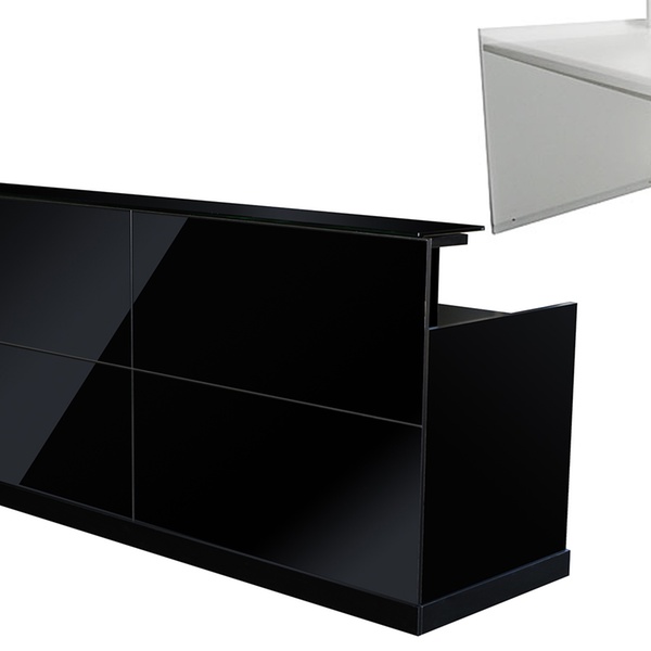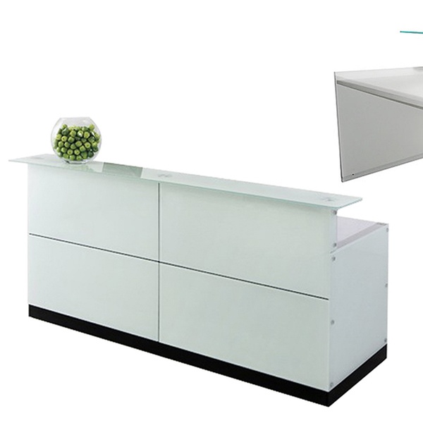 Ein elegantes Büromöbel mit Front und Ablage aus temperaturbeständigem Glas