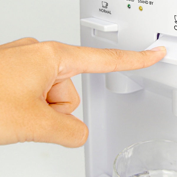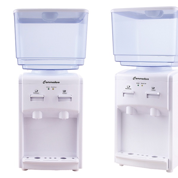 Kompakter Wasserspender mit Wassertank, abnehmbarer Tropfschale und automatischer Temperaturregelung für kaltes und Raumtemperatur-Wasser