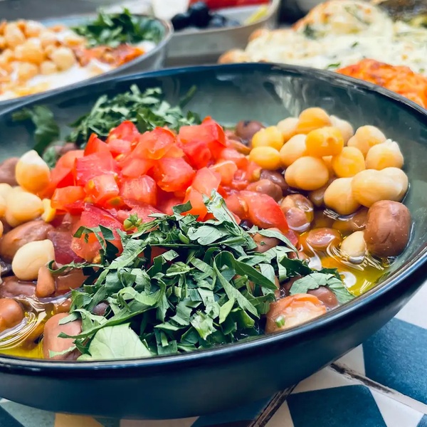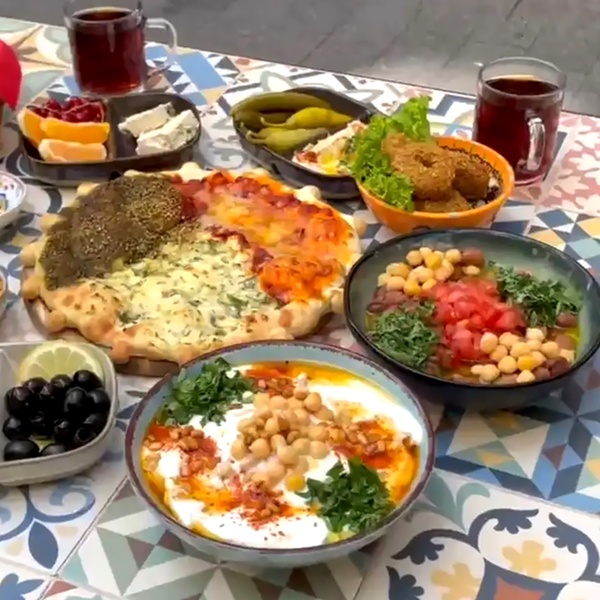 Erlebe den orientalischen Brunch mit handgemachtem Hummus, Falafel, Fatteh und frisch gebackenem Fladenbrot in gemütlicher Atmosphäre