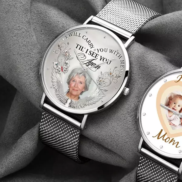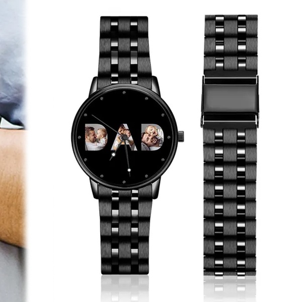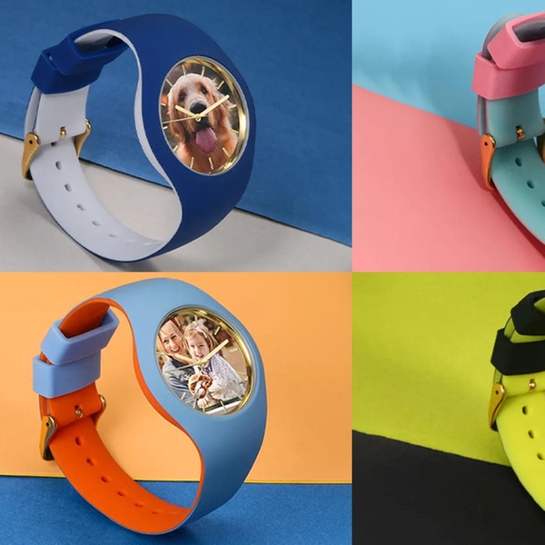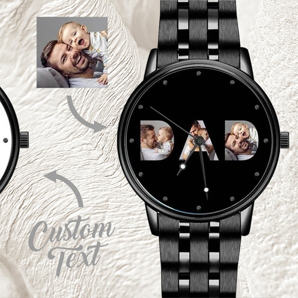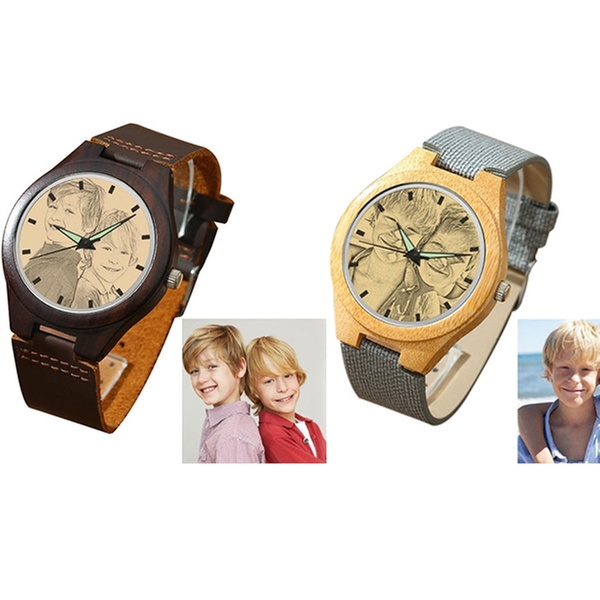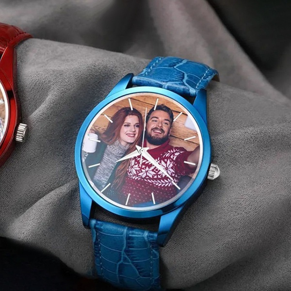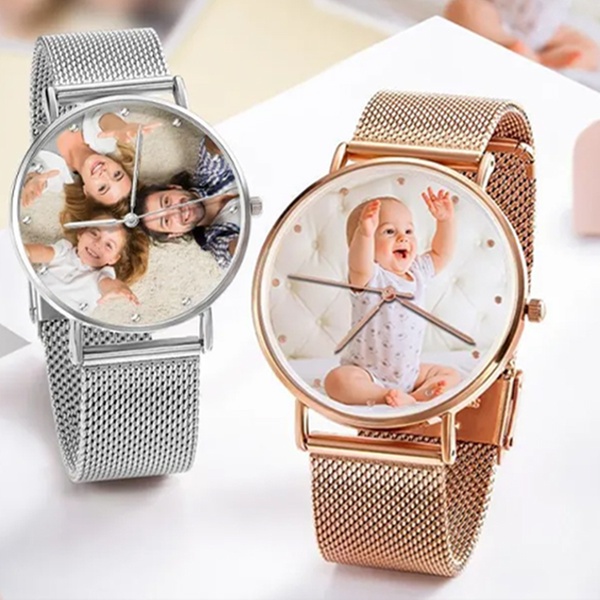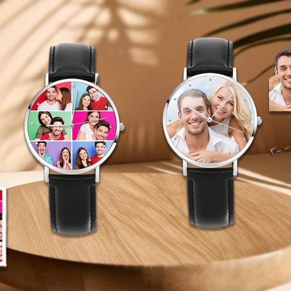 Die Armbanduhren für Damen und Herren können mit einen Foto als Zifferblatt und einer Gravur auf der Rückseite personalisiert werden
