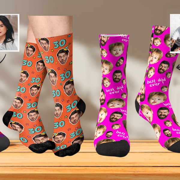 Die Fotosocken können mit Farben, Designs und dem eigenen Bild personalisiert werden und eignen sich bestens als Geschenk
