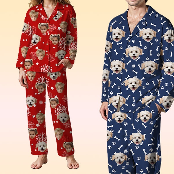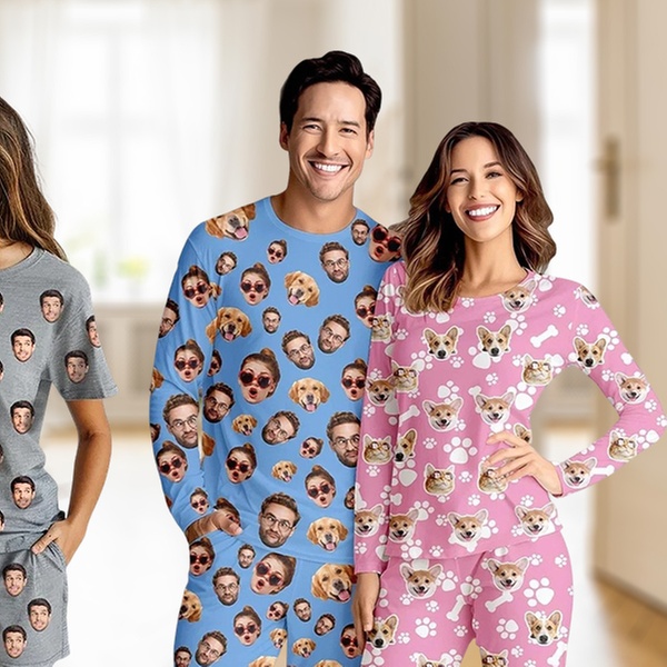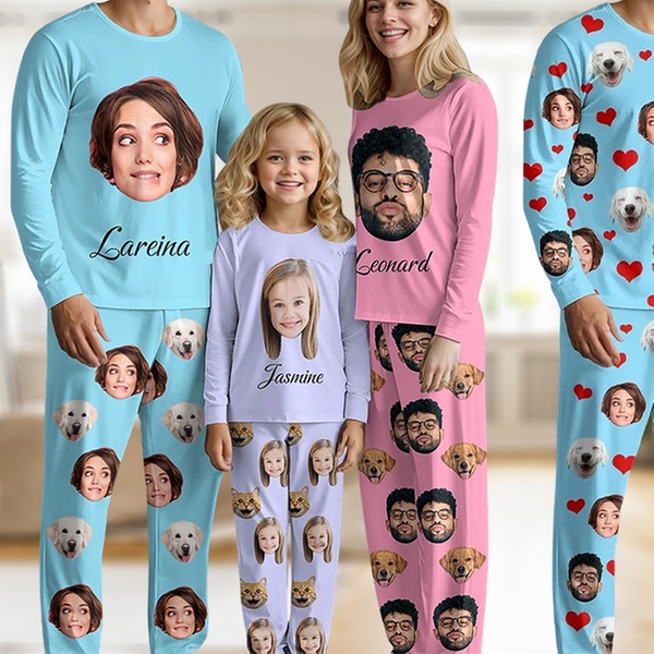 Das Pyjama-Set kann mit Farben, Designs und dem eigenen Bild personalisiert werden und eignen sich bestens als Geschenk