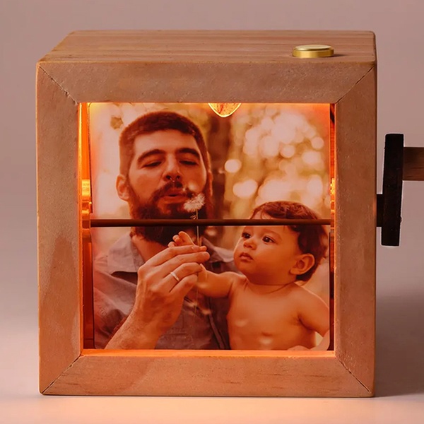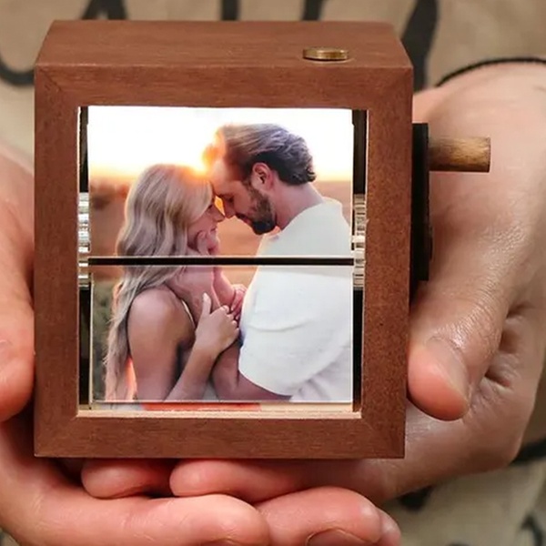 Erwecke deine Erinnerungen zum Leben – mit dem personalisierbaren Handkurbel-Fotorahmen aus hochwertigem Holz. Durch sanftes Drehen der Kurbel laufen bis zu 16 Fotos wie ein kleiner Kurzfilm ab und schaffen ein magisches, interaktives Erlebnis. Der edle Holzrahmen fügt sich stilvoll in jedes Zuhause ein und macht deine Lieblingsmomente sichtbar. Justyling steht für exklusive, personalisierte Geschenkideen mit Liebe zum Detail – bestelle dir jetzt einen oder gleich zwei dieser einzigartigen Fotorahmen und lass Erinnerungen lebendig werden!