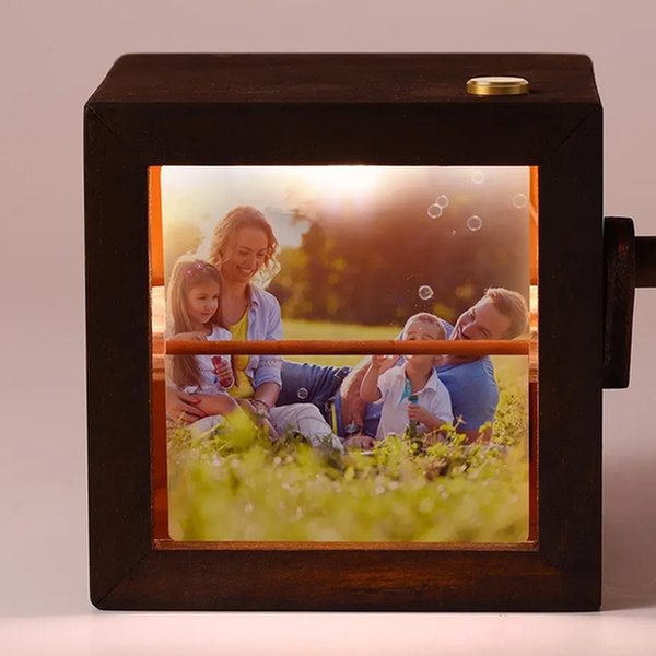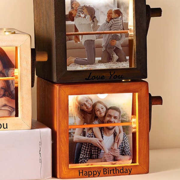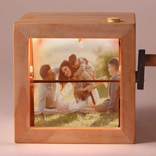 1 oder 2 personalisierbare Handkurbel-Fotorahmen aus Holz