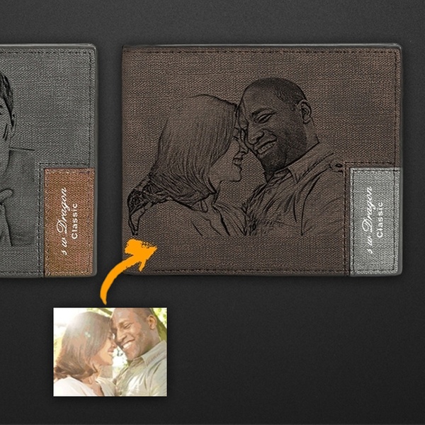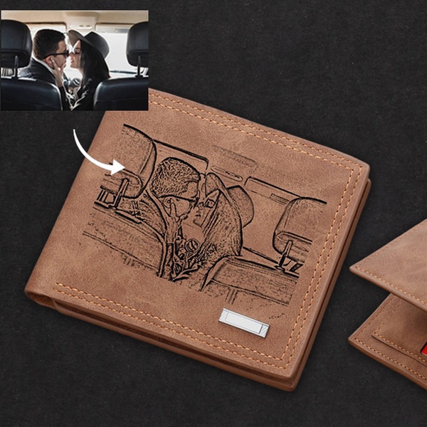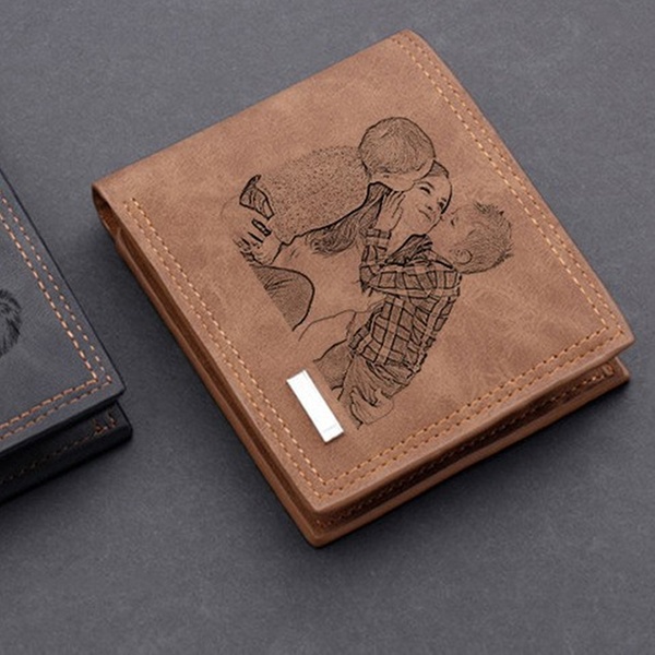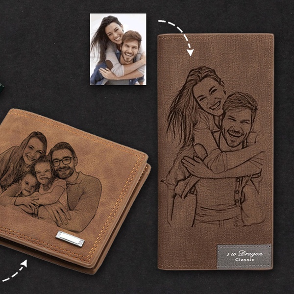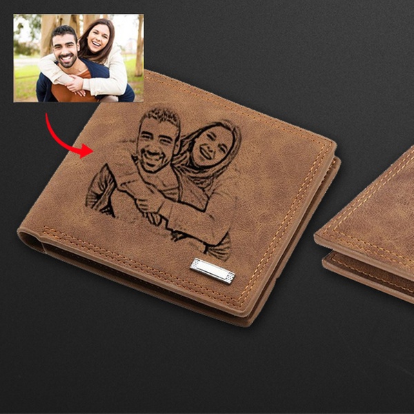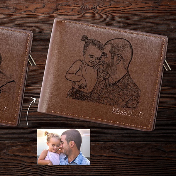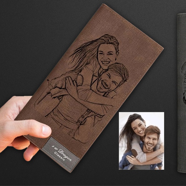 Die Börsen aus Kunstleder für Damen und Herren können mit einem Foto und einer Gravur versehen werden und eignen sich besonders als Geschenk