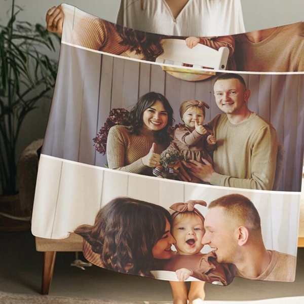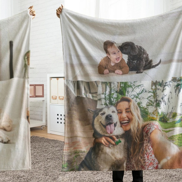 Die personalisierbaren Foto-Decken können mit einem beliebigen Foto, lustigen Motiven und individuellen Texten bedruckt werden