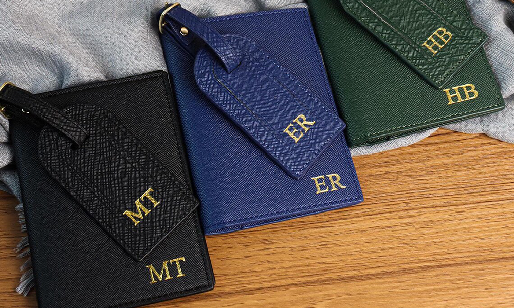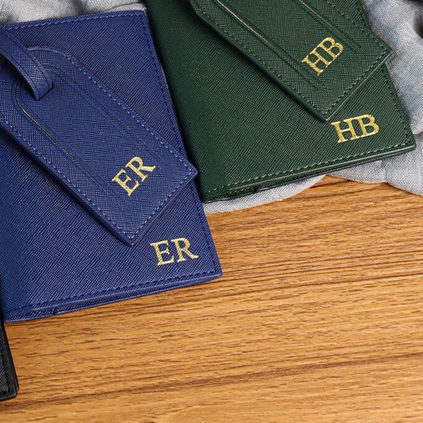 Personalisierbarer Gepäckanhänger mit gravierten Initialen, individuellen Farben und Schriftarten – stilvoll und einzigartig