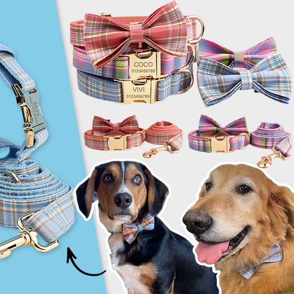 1x oder 2x personalisierbares Halsband für Haustiere mit Namensschild in Farbe und Design nach Wahl