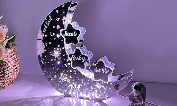 1x oder 2x LED-Mond-Nachtlicht mit Namen und personalisierbaren Text-Elementen