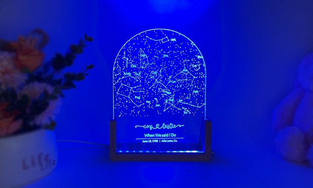 Bist du auf der Suche nach einem einzigartigen Geschenk? Ein personalisiertes LED Sternenbild-Nachtlicht könnte genau das Richtige sein! Mit eingebauten LEDs und einem schönen Acryl-Design wird dieses Nachtlicht sicher jeden Raum erhellen. Es ist einfach über ein USB-Kabel anzuschließen und kann individuell gestaltet werden.