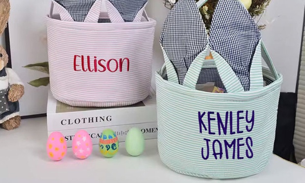 • 1 oder 2 personalisierbare Osterkörbe bestickt oder bedruckt mit Namen oder Text