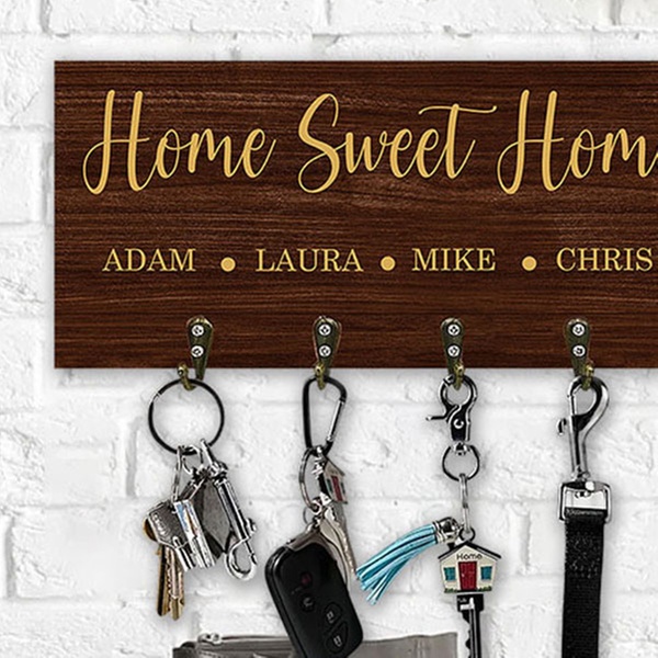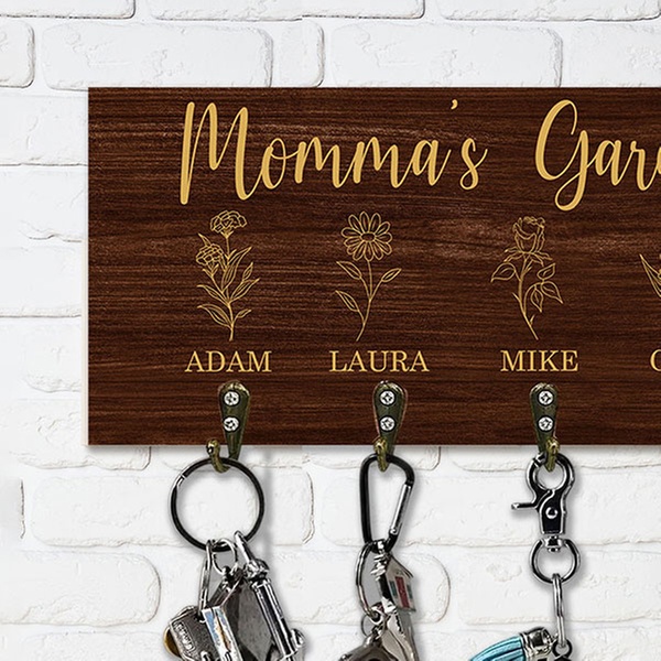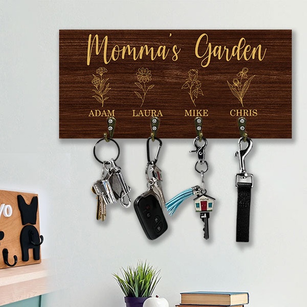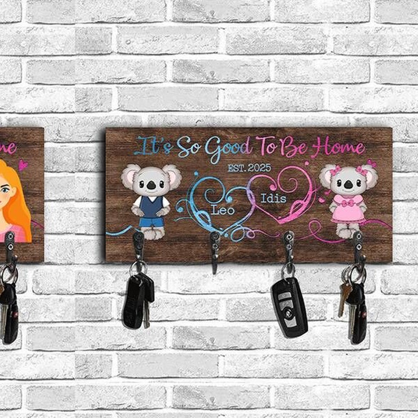 Bereit, deinem Eingangsbereich mehr Stil und Persönlichkeit zu verleihen? Der personalisierte Schlüsselhalter aus hochwertigem Holz kombiniert praktischen Nutzen mit liebevoller Gestaltung – und wird garantiert zum Blickfang an deiner Wand.