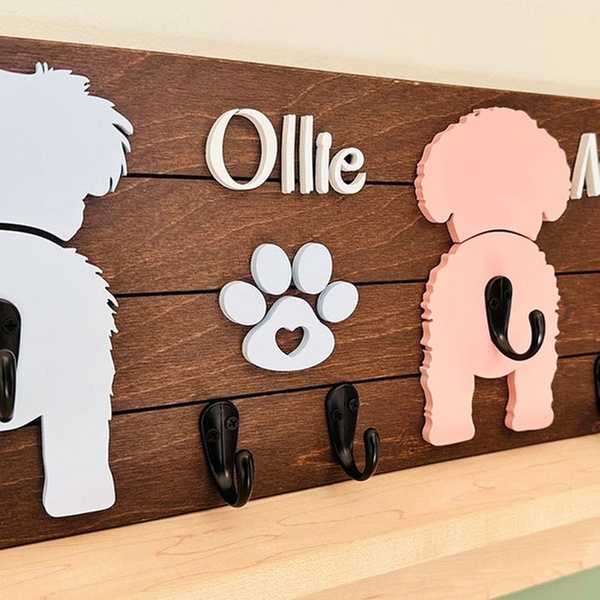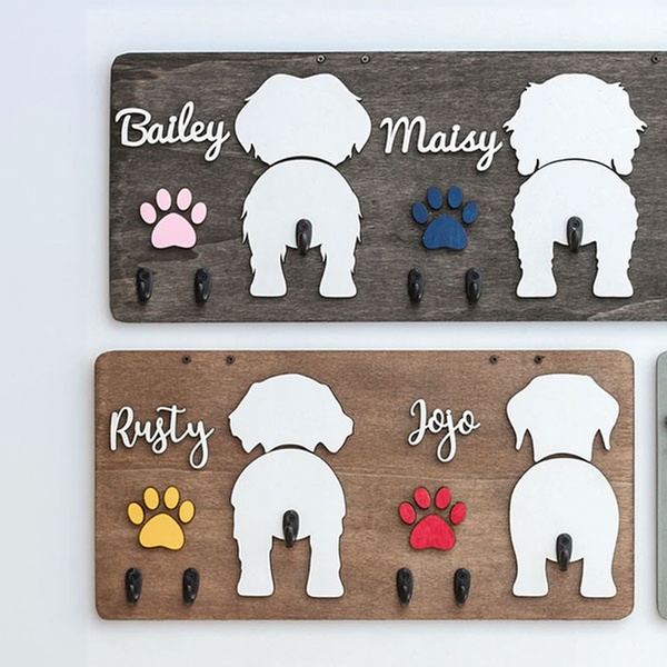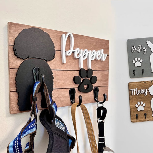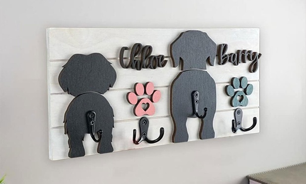 - 1x oder 2x Personalisierbares Schlüsselbrett und Hundeleinenhalter in Design nach Wahl