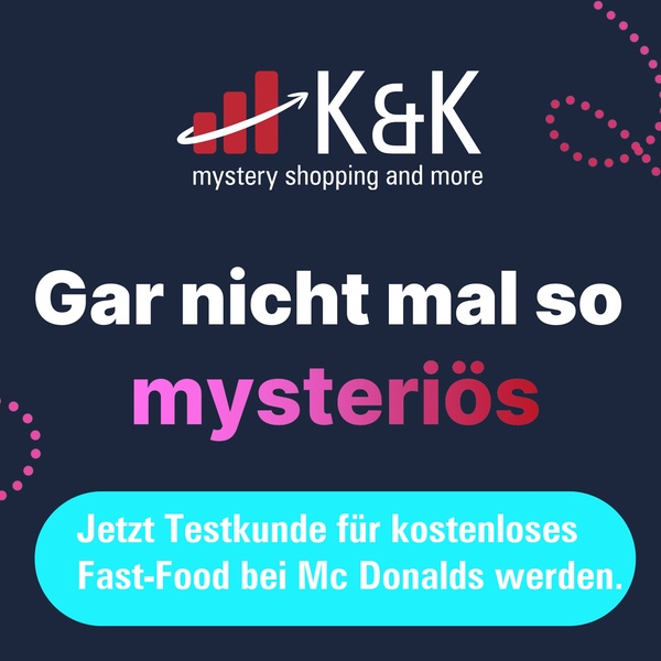 Wir von K&K mystery shopping and more GmbH untersuchen seit mehr als 10 Jahren die Service- und Beratungsqualität verschiedenster Unternehmen. Wir unterstützen unsere Auftraggeber bei der Verbesserung der Kundenzufriedenheit, indem wir ihnen mit Testbesuchen und/oder Testanfragen ein Spiegelbild aus Sicht ihrer Besucher, Kunden, Patienten oder Teilnehmer geben. Die Unternehmen sind von ganz unterschiedlicher Art, wie z. B. Apotheken, Einzelhändler, Friseure, Hotels, Immobilienbüros, mobile Dienstleister, Parfümerien, Restaurants, Pflegeheime u. v. m. - daher suchen wir deutschlandweit stets Testpersonen, die uns bei unserer Mission unterstützen.