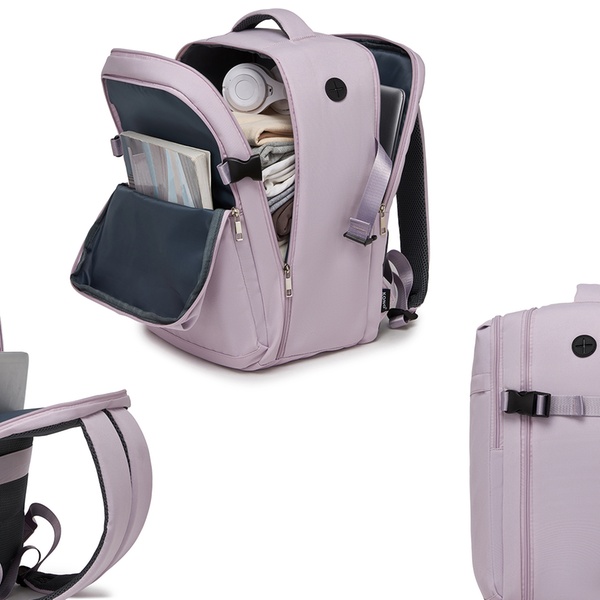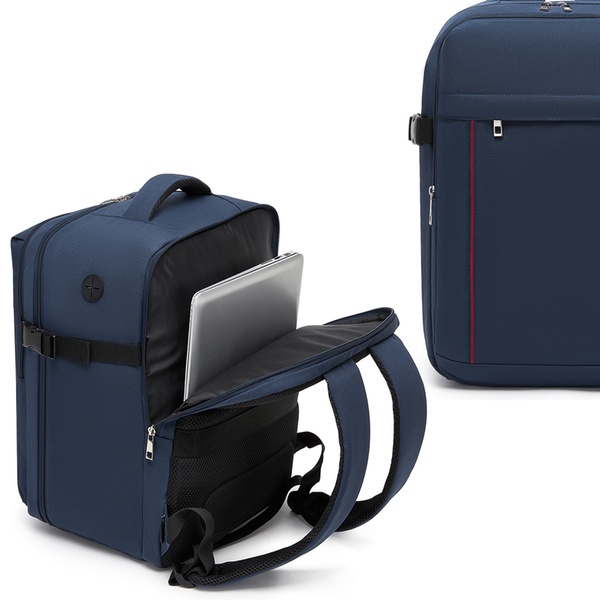 Kabinenrucksack speziell auf Freigepäckgrößen abgestimmt, mit 180°-Öffnung wie Mini-Koffer, 15,6'' Laptopfach, Kompressionsriemen und Trolleyhülle – ideal für Flughafen und Arbeitsweg