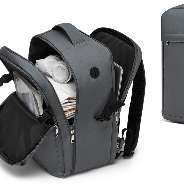 Pendlerfreundliches Design: Kabel-/Kopfhöreröffnung für unterwegs und Front-Organizerfach für schnellen Zugriff auf Reisepass oder Handy