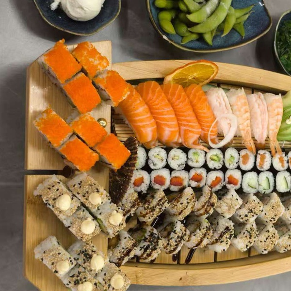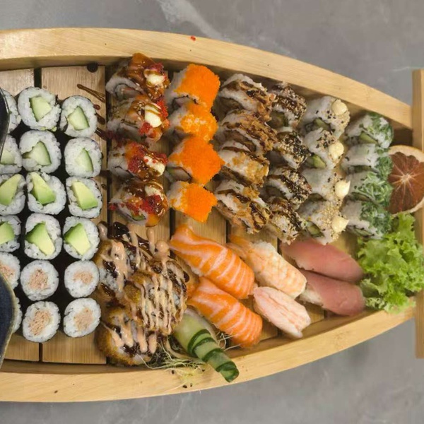 Wähle zwischen der Classic- oder Veggie-Sushi-Platte, einer Beilage und einer Kugel Eis nach Wahl – für ein rundum gelungenes Geschmackserlebnis.