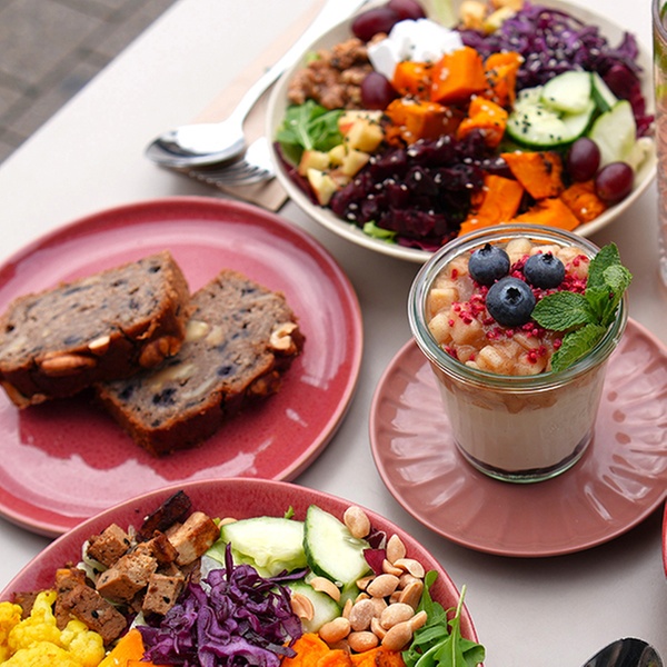 Entdecke das neue Herbstmenü und wähle aus einer Vielzahl von frischen Salaten, Bowls oder Eintöpfen mit gesunden Zutaten, homemade Getränken und leckeren Desserts