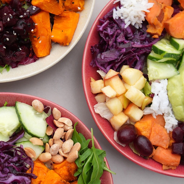 Entdecke das neue Herbstmenü & wähle aus einer Vielzahl von frischen Salaten, Bowls oder Eintöpfen mit gesunden Zutaten & leckeren Desserts