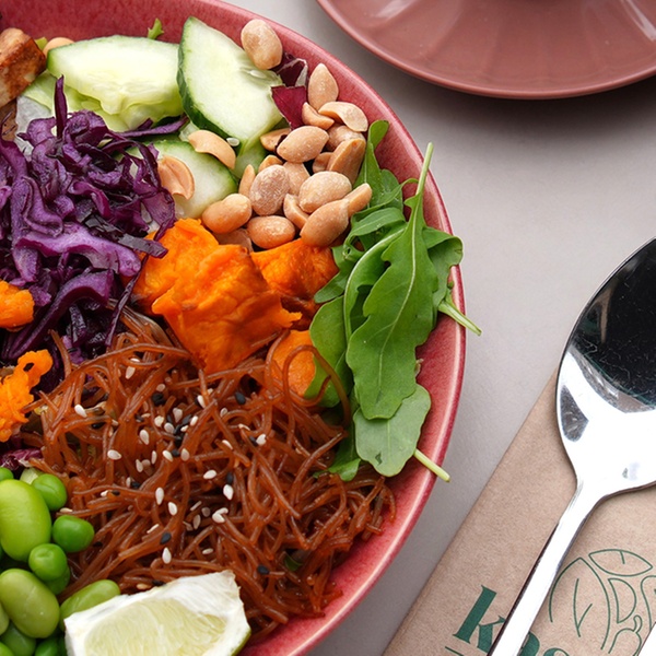 Smart Food mit kurzen Wartezeiten: Die pflanzlichen Gerichte sind nicht nur gesund, sie werden auch jeden Tag frisch vor Ort zubereitet. Bei Kaspar Schmauser liegt der Fokus darauf, dass ausschließlich die frischesten und gesündesten Zutaten verwendet und weiterverarbeitet werden. Lange Wartezeiten gibt es dabei nicht – du kannst vor Ort an den digitalen Terminals selbst bestellen. In der Zwischenzeit wird mit viel Liebe und Leidenschaft deine Auswahl zusammengestellt und landet nach wenigen Minuten frisch auf deinem Teller.
