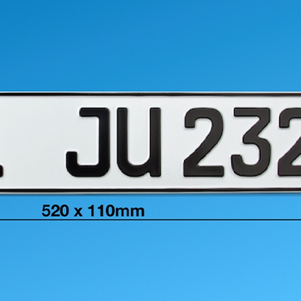 1, 2 oder 3 Wunsch-Nummernschilder für das Auto mit der Größe 520 x 110 mm werden bequem per Post in Top-Qualität nach Hause geliefert