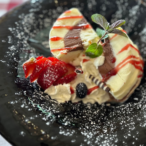 - Gemischtes Eis mit Sahne und 3 Kugeln nach Wahl: Vanille, Erdbeere, Schoko, Stracciatella, Zitrone