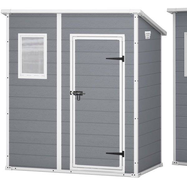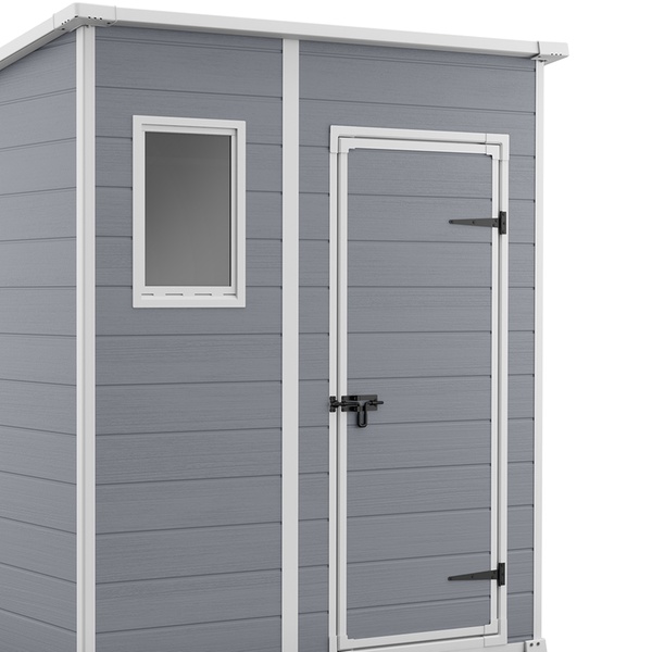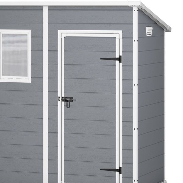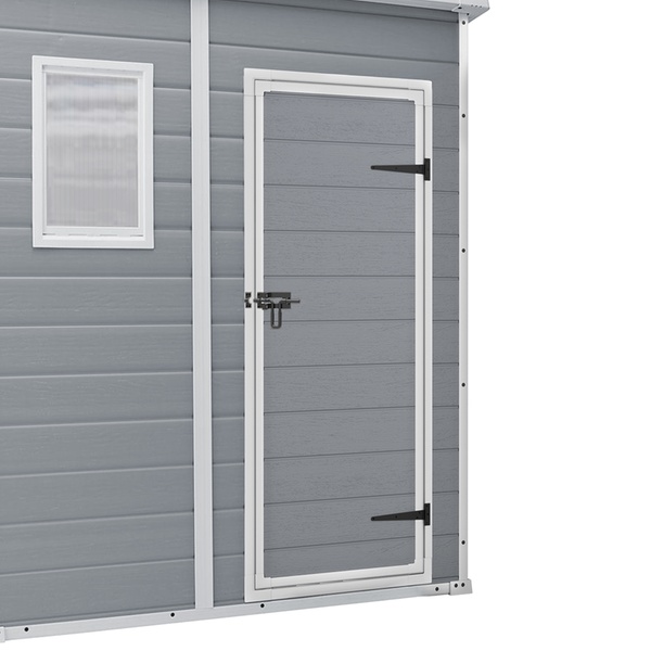 Wetter- und UV-beständig Kunststoffgerätehaus mit Tür und Fenster, Pultdach, Bodenplatte und Türriegel