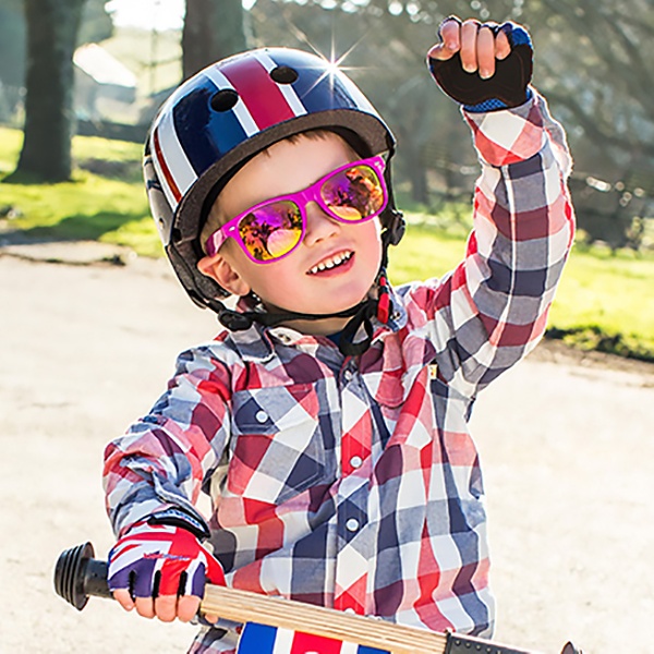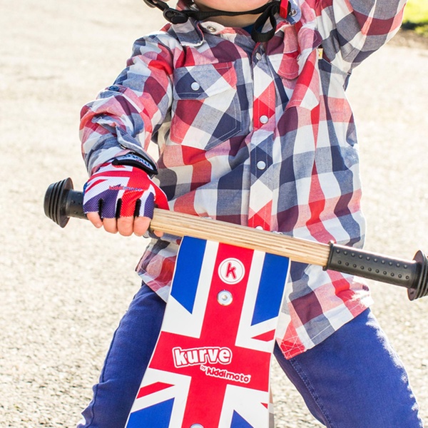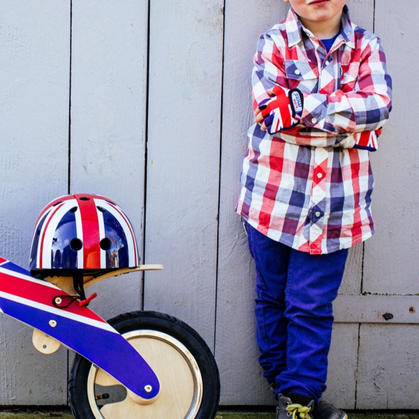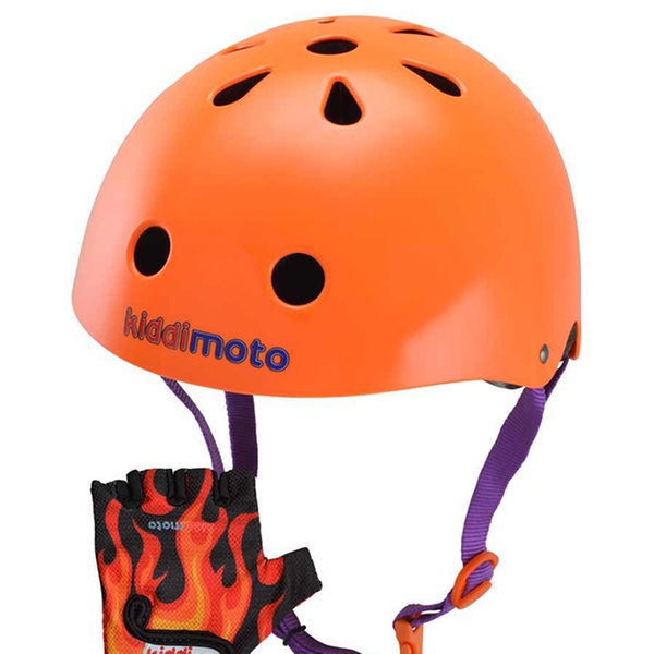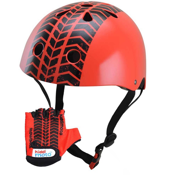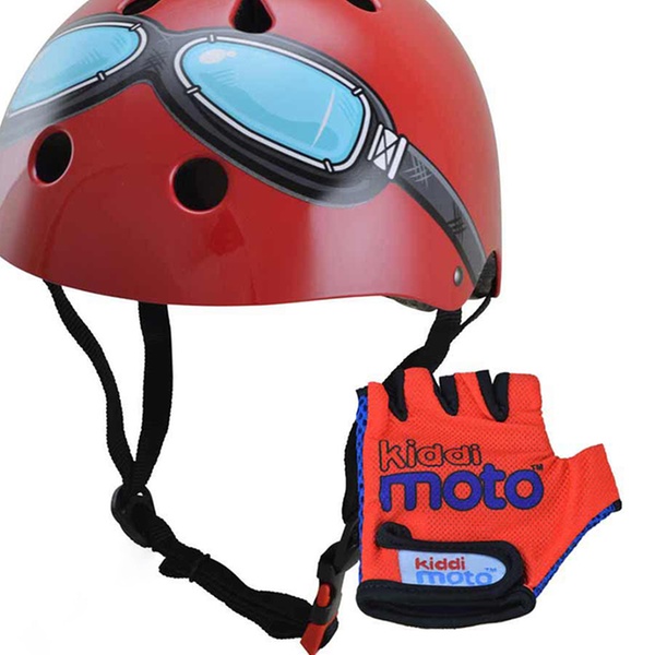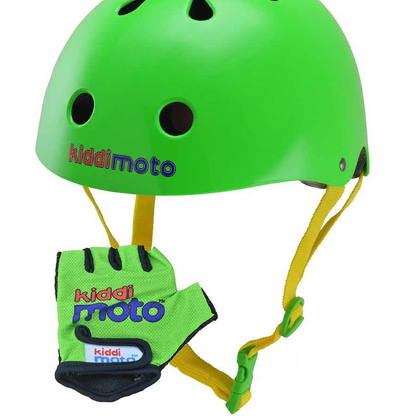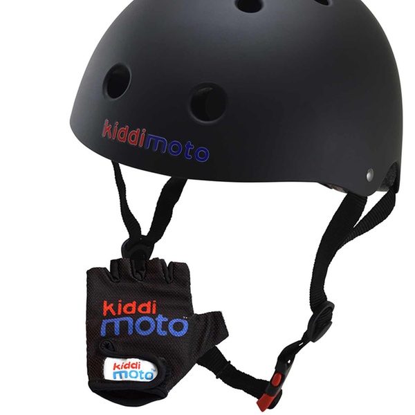 - Mit einem kiddimoto Kinderhelm mit den passenden Handschuhen