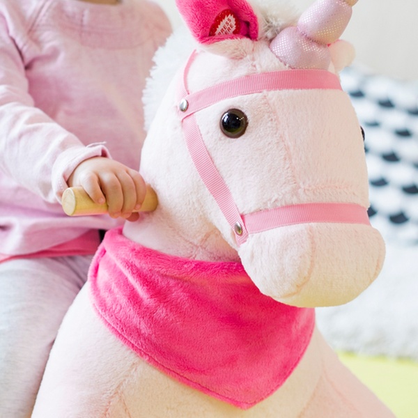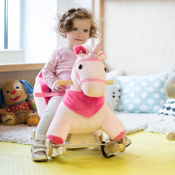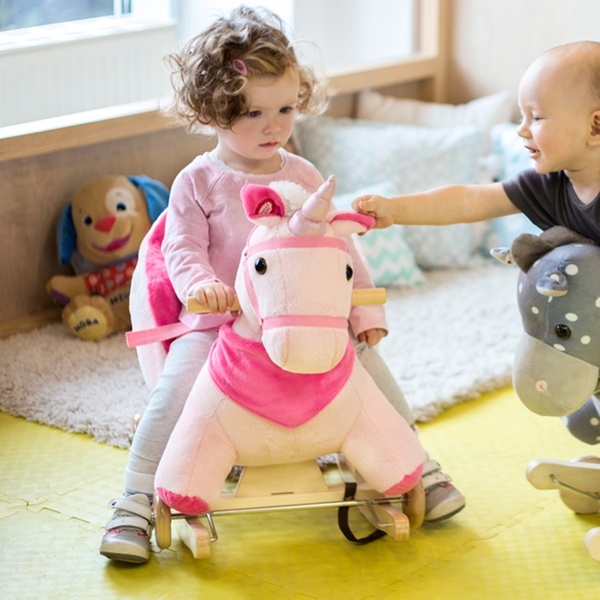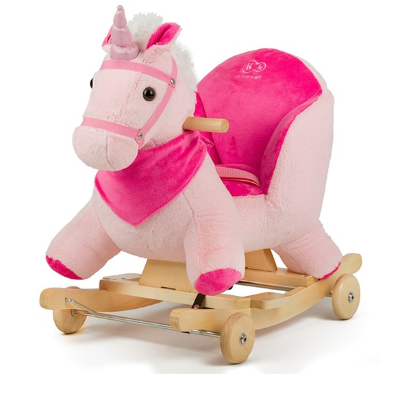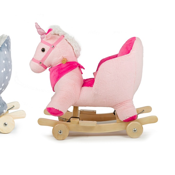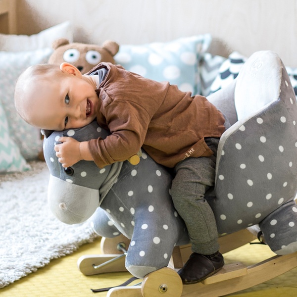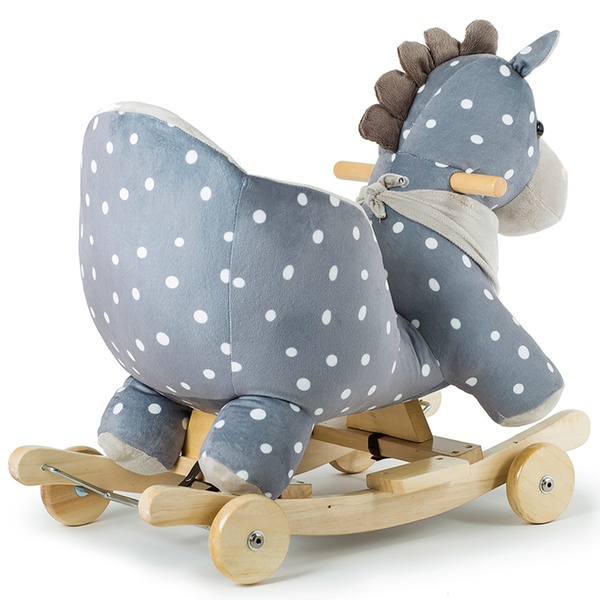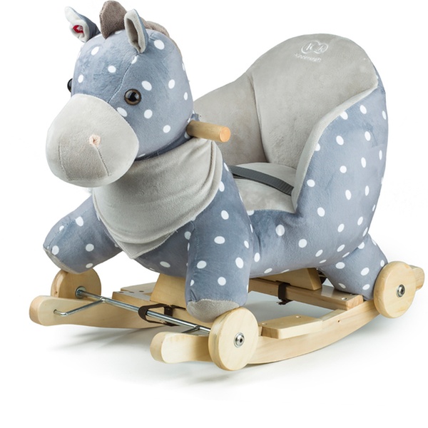 Die Wippe ist mit Räder auf den Kufen ausgestattet, dank denen man sie schnell in ein komfortables Auto wandeln kann