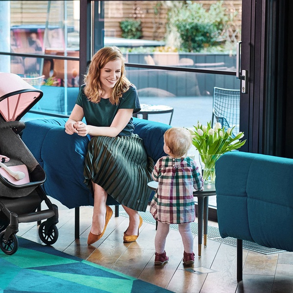 - Mit Adaptern vom Typ Maxi-Cosi®, dank denen ee auf den meisten Kinderwagen montiert werden kann