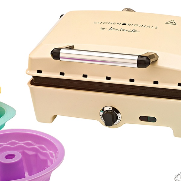 Kleiner Backofen, handlicher Kontaktgrill und Party- bzw. Bratpfanne in einem Gerät inklusive 3 verschiedener Backformen aus Silikon