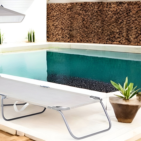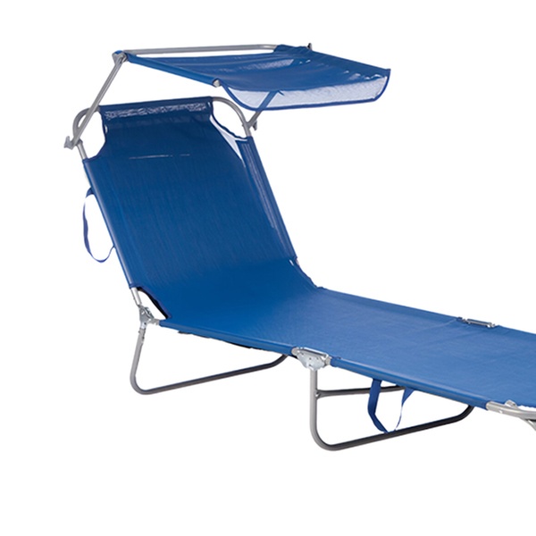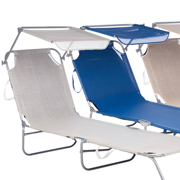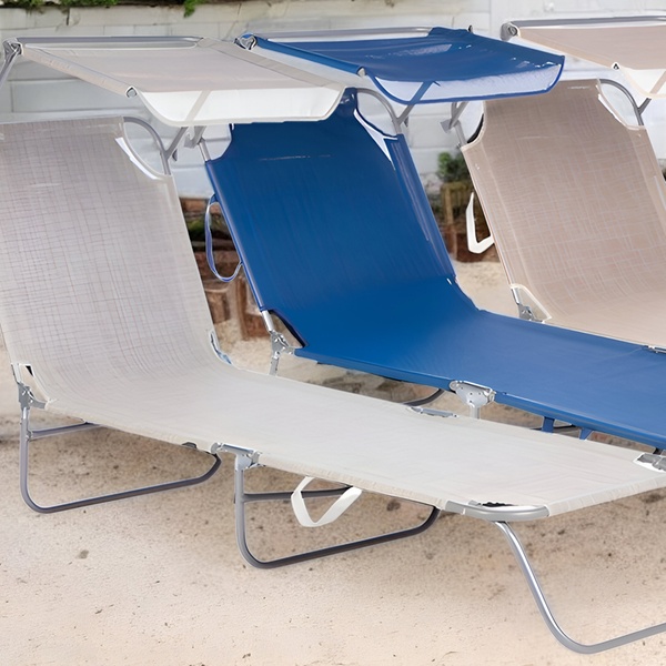 Klappbare Sonnenliege mit integriertem Sonnenschutz in Beige, Blau oder Grau
