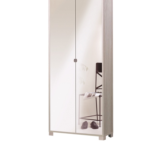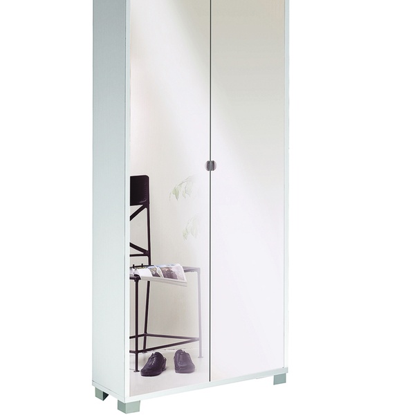 Dieser moderne Schrank verfügt über 8 verstellbare Einlegeböden und hat verspiegelte Fronten