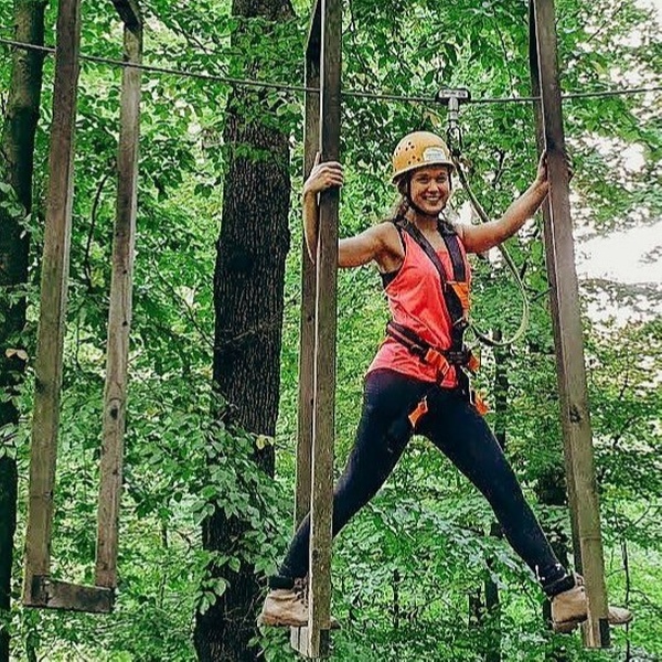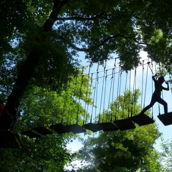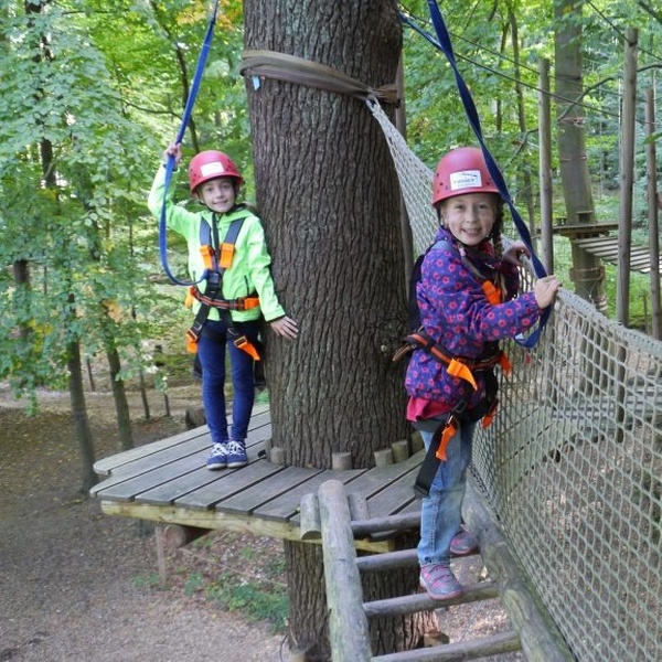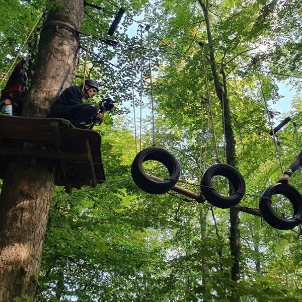 - Hochseil-Parcours mit 11 Parcours unterschiedlicher Schwierigkeitsstufen und insgesamt 100 Elementen wie z. B.: