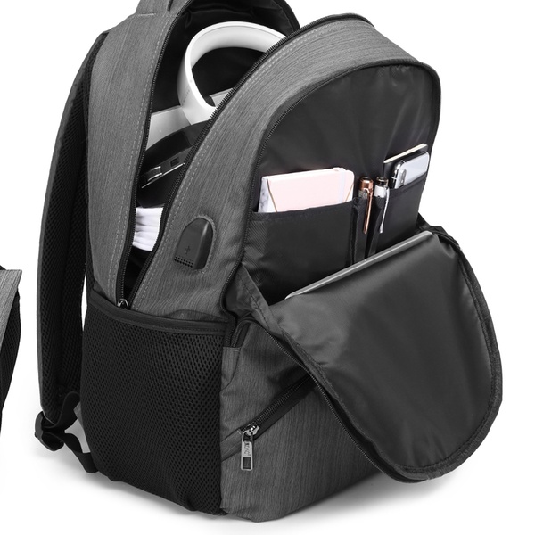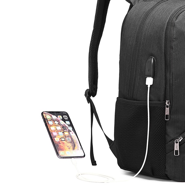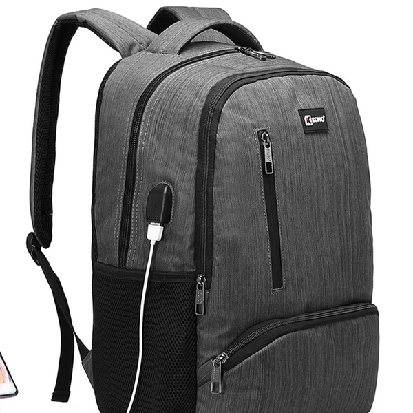 Geräumiger Rucksack mit wasserabweisender Beschichtung, USB-Ladeanschluss, geräumigem Hauptfach und vielen Taschen