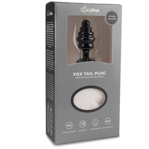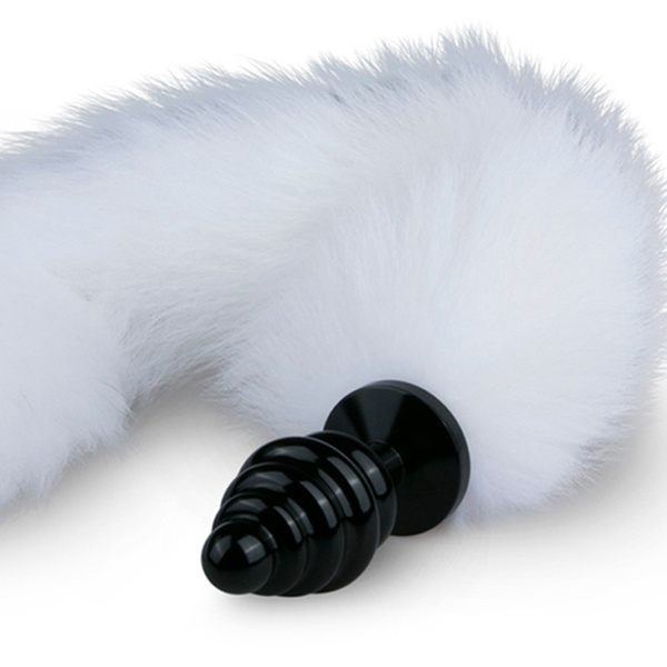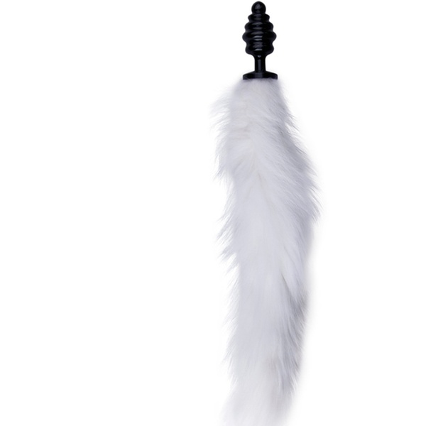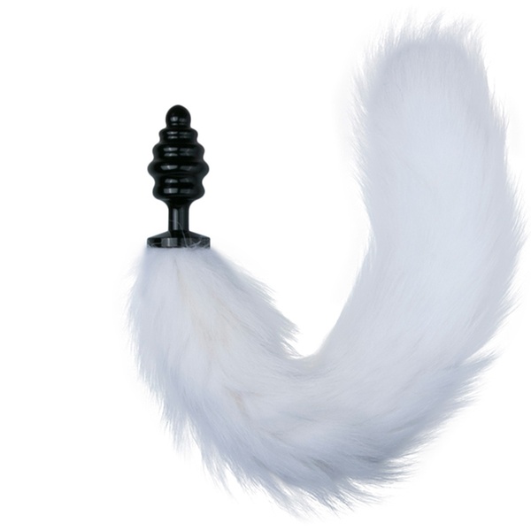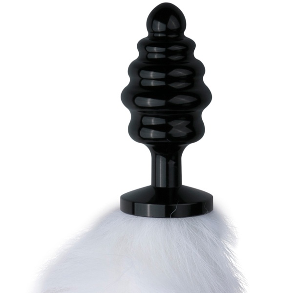 Weißer Fuchsschwanz mit schwarz-gerippten Analplug