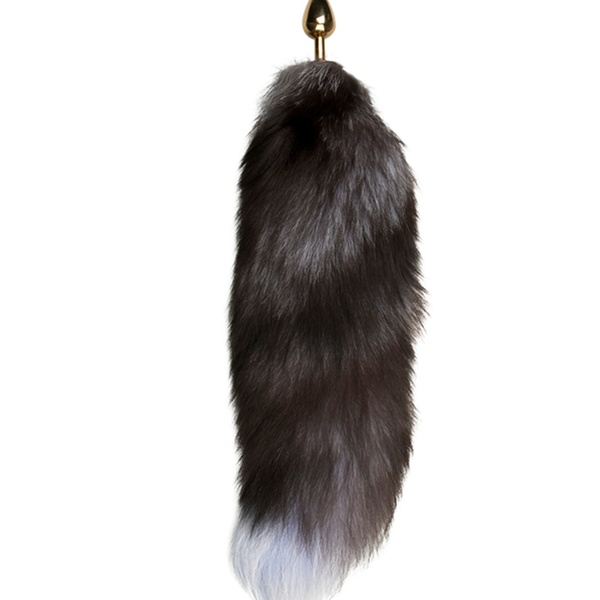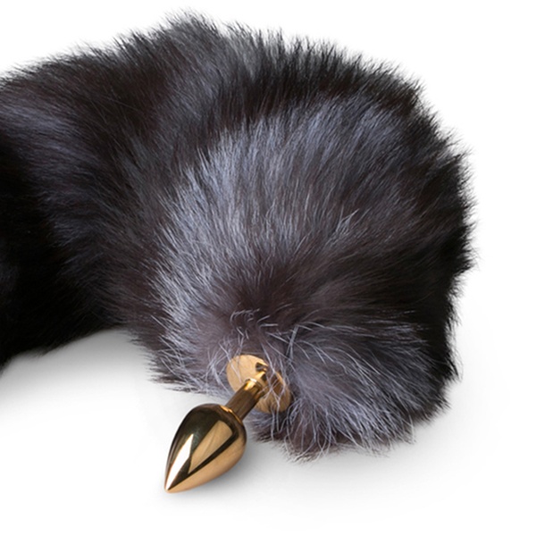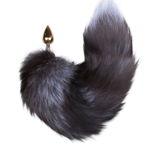 Schwarzer Fuchsschwanz goldfarbenem Analplug