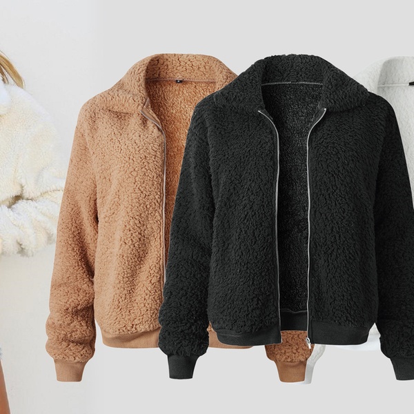 Kuschelige Teddyjacke mit Reißverschluss und 2 geräumigen Eingrifftaschen
