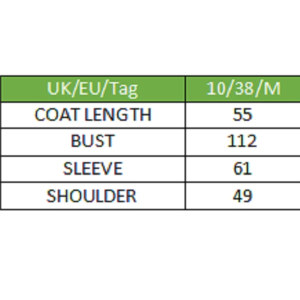 | Größe | Länge | Brust | Ärmellänge | Schultern |