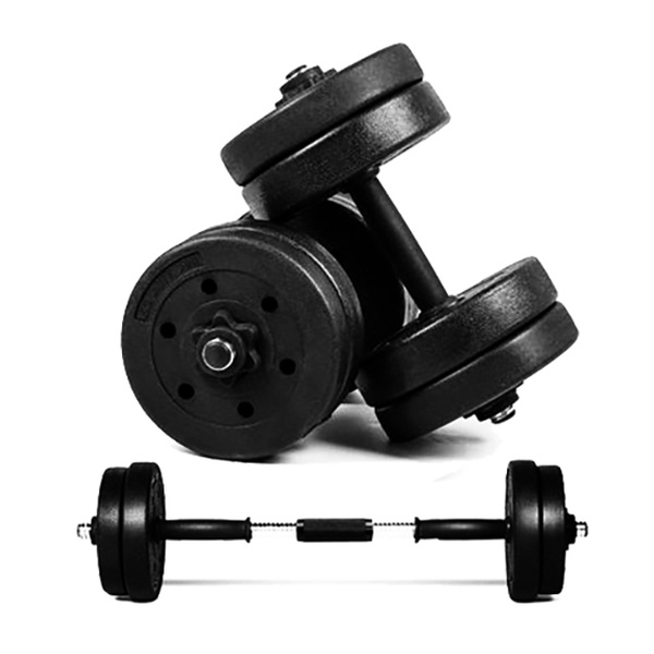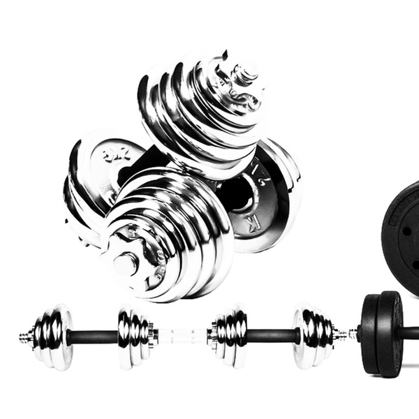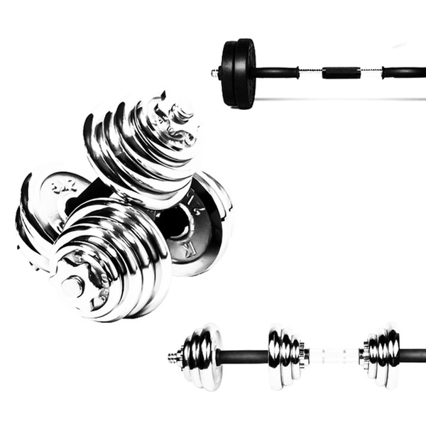 - Kurzhantel-Set mit Adapter, dank dem es in ein Langhantel-Set umgewandelt werden kann