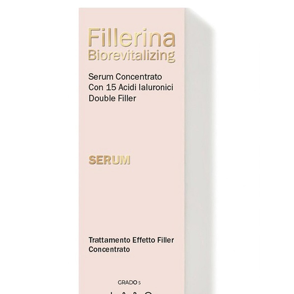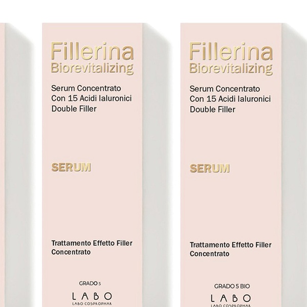 LABO Fillerina Serum 15 HA Grad 5 biorevitalising: Aqua, Glycerin, Diethylhexyl Sebacate, Cetearyl Isononanoate, Polysorbate 20, Hydrolyzed Glycosaminoglycans, Dimethicone, Tocopheryl Acetate, Glycereth-26, Sodium Hyaluronate, Panthenol, Acetyl Glucosamine, Hydrolyzed Sodium Hyaluronate, Pseudoalteromonas Ferment Extract, Soluble Collagen, Propanediol, Hydrolyzed Hyaluronic Acid, Sodium Pca, Carnitine Fumarate, Sodium Lactate, Arginine, Hyaluronic Acid, Hydrolyzed Elastin, Magnesium Gluconate, Sodium Acetylated Hyaluronate, Aspartic Acid, Ceramide Np, Succinic Acid, Hydrolyzed Collagen, Lecithin, Ceramide Ap, Cholesterol, Phytosphingosine, Hydrolyzed Dna, Hydrolyzed Rna, Glycine, Alanine, Glutamic Acid, Glutamine, Leucine, Tryptophan, Tyrosine, Serine, Valine, Hydroxypropyl Cyclodextrin, Isoleucine, Proline, Threonine, Sodium Ascorbyl Phosphate, Leuconostoc/Radish Root Ferment Filtrate, Rhamnose, Histidine, Phenylalanine, Retinyl Palmitate, Galactoarabinan, Acetyl Hexapeptide-30, Glucose, Glucuronic Acid, Sodium Pyruvate, Xylitol, Glyceryl Glucoside, Sodium Hyaluronate Crosspolymer, Ceramide Eop, Nonapeptide-1, Palmitoyl Tripeptide-38, Sh-Polypeptide-121, Sh-Oligopeptide-1, Sh-Oligopeptide-2, Sh-Polypeptide-11, Sh-Polypeptide-3, Sh-Polypeptide-5, Sh-Polypeptide-8, Glycine Soja Oil, Acetyl Hexapeptide-37, Folic Acid, Calcium Chloride, Cupric Chloride, Ferric Chloride, Magnesium Chloride, Manganese Chloride, Zinc Chloride, Acetyl Cysteine, Lysine Hcl, Methionine, Taurine, Biotin, Niacinamide, Pyridoxine Hcl, Thiamine Hcl, Cyanocobalamin, Riboflavin, Tocopherol, Beta-Carotene, Daucus Carota Sativa Root Extract, Daucus Carota Sativa Seed Oil, Hydrogenated Phosphatidylcholine, Xanthan Gum, Citric Acid, Caprylyl Glycol, Propylene Glycol, Pentylene Glycol, Butylene Glycol, Decylene Glycol, 1,2-Hexanediol, Sodium Lauroyl Lactylate, Salicylic Acid, Sorbitol, Ethylhexylglycerin, Caprylic Acid, Sorbic Acid, Helianthus Annuus Seed Oil, Sodium Oleate, Potassium Sorbate, Disodium Phosphate, Sodium Phosphate, Tetrasodium Glutamate Diacetate, Ethylbisiminomethylguaiacol Manganese Chloride, Sodium Hydroxide, Sodium Chloride, Olive Oil Peg-8 Esters, Sodium Benzoate, Phenoxyethanol, Dimethicone/Vinyl Dimethicone Crosspolymer, Polyacrylamide, Polyacrylate Crosspolymer-11, C13-14 Isoalkane, Disodium Edta, Ammonium Acryloyl Dimethyltaurate/Carboxyethyl Acrylate Crosspolymer, Laureth-7, Parfum, Limonene, Linalyl Acetate, Hexamethylindanopyran, Pca, Hexyl Cinnamal, Acetylcedrene, Linalool, Citrus Aurantium Peel Oil, Carbomer, Coumarin, Juniperus Virginiana Oil, Citral, Geraniol, Terpineol, Pinene, Citronellol.
