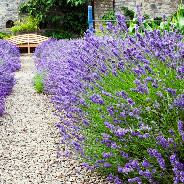 Beeindruckende Lavendel Hidcote- und Munstead-Pflanzen schmücken mit ihrer Vielzahl von Blüten Garten, Balkon oder Terrasse